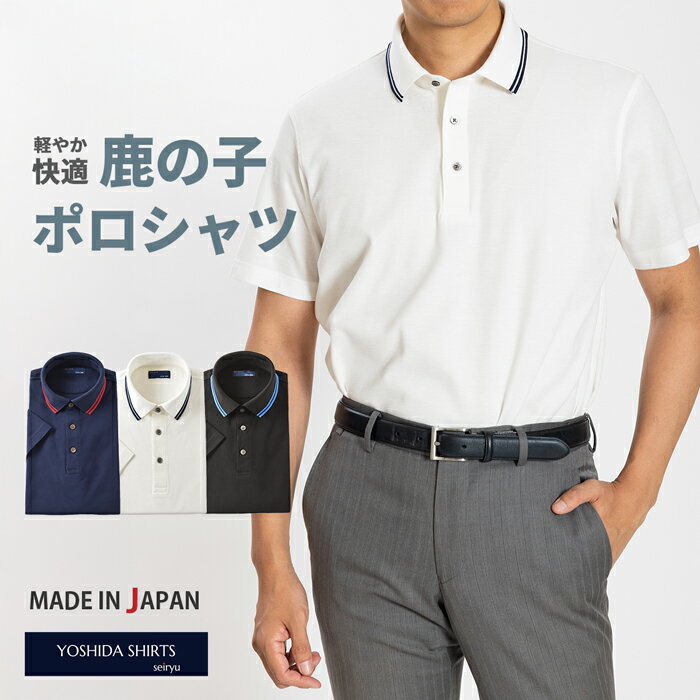 【最大3,000円OFFクーポン トライアル〜11/30 9:59】 ポロシャツ メンズ 半袖 日本製 吸水速乾 鹿の子 綿100% ノーアイロン ストレッチ ビジネスリブ襟 ゴルフ 無地 白 ホワイト 黒 ブラック ネイビー 2021-PRM4