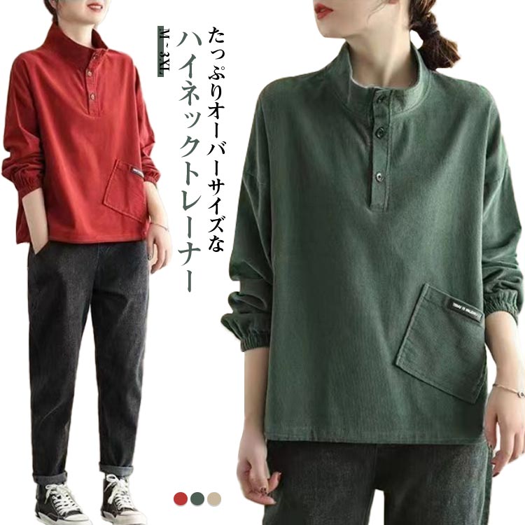 トレーナー レディース 春 秋 長袖 春 トレーナー ハイネック tシャツ トップス 長袖 大きめ ゆったり トップス 体型カバー カジュアル 大きいサイズ ゆるっと 暖かい お洒落 きれいめ