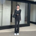 セットアップ ルームウェア ワンピース スウェット かわいい で カジュアルの Vネック フード付き ドローストリング トップ ハイウエスト 万能 スリム フレアパンツ スーツ レディース 春 スタイル
