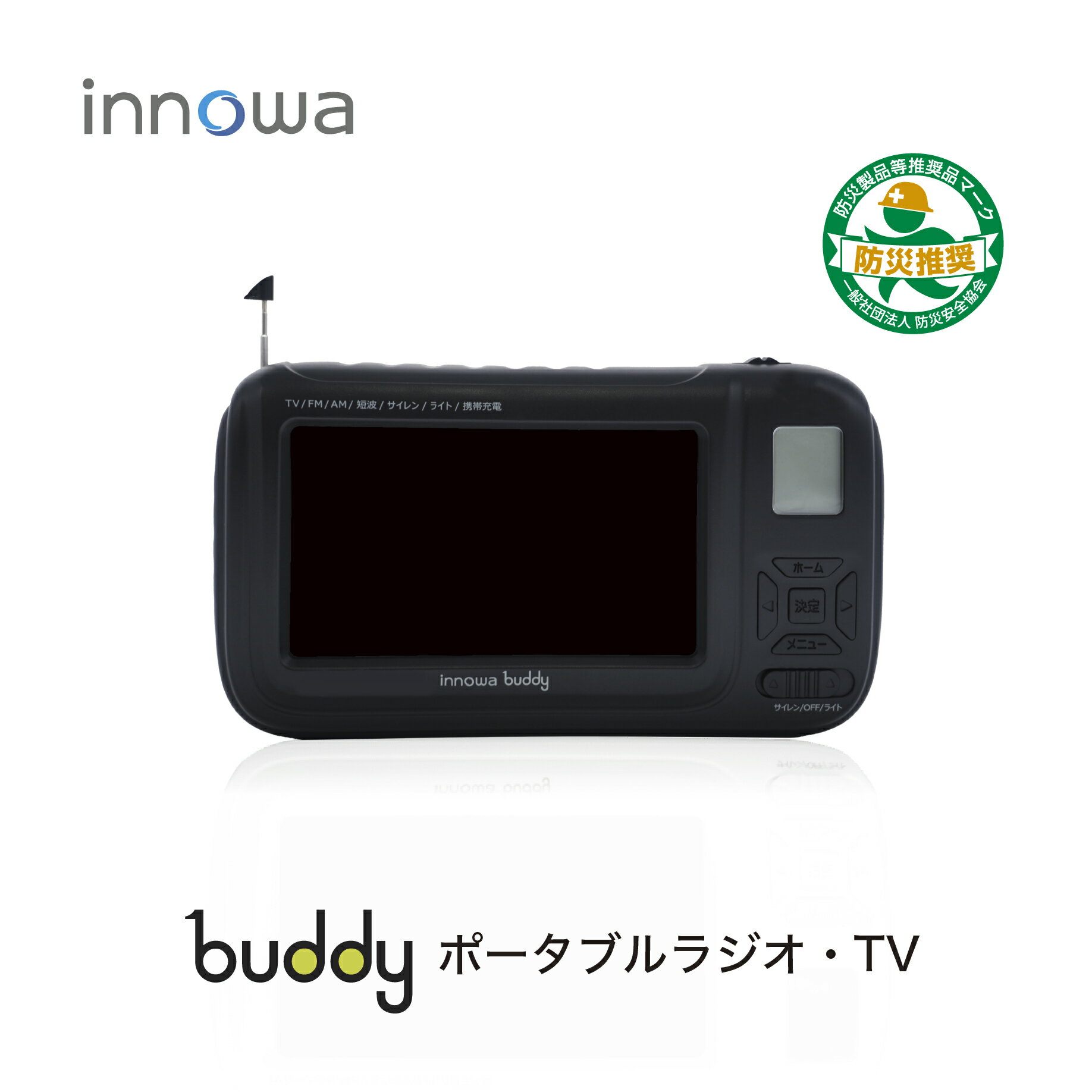[話題の商品] innowa buddy ポータブルラジオ ポータブルTV イノワ ラジオ 持ち運び ワイヤレス 防災ラジオ 防災 TV 携帯ラジオ 防災テレビ 携帯テレビ 小型 災害 充電式 乾電池式 手回し 4.3インチ ワンセグ AM ワイドFM ライト サイレン ブザー テレビ NHテクノロジー