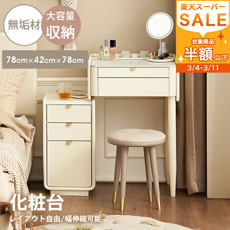 半額品 ドレッサー 化粧台 鏡台 メイク台 化粧テーブル コスメ台 伸縮 伸長式 小さい化粧台 ホワイト キャビネット付き 北欧 引出し付き 白 ホワイト 木製 韓国風 コンパクト 省スペース 収納 リビング 寝室 ベッドサイド 木目 天然木 ナチュラル ドレッサーテーブル MUTUKI