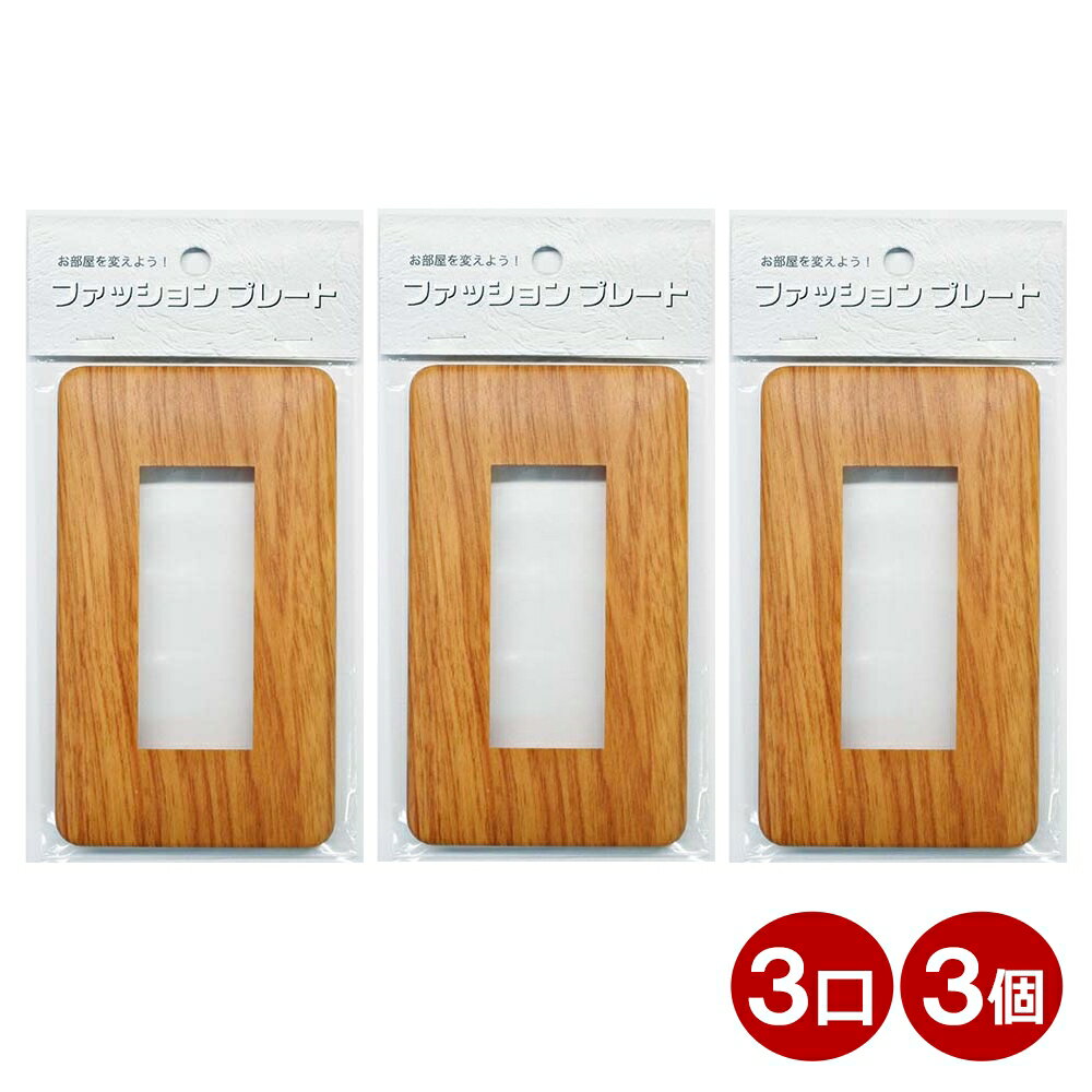 スイッチカバー 3口用 木目調 ライトブラウン スイッチプレート 3個 コンセントカバー 壁用プレート おしゃれ カバー交換用 OHM 00-4685 HS-UW06-3P 【メール便送料無料】
