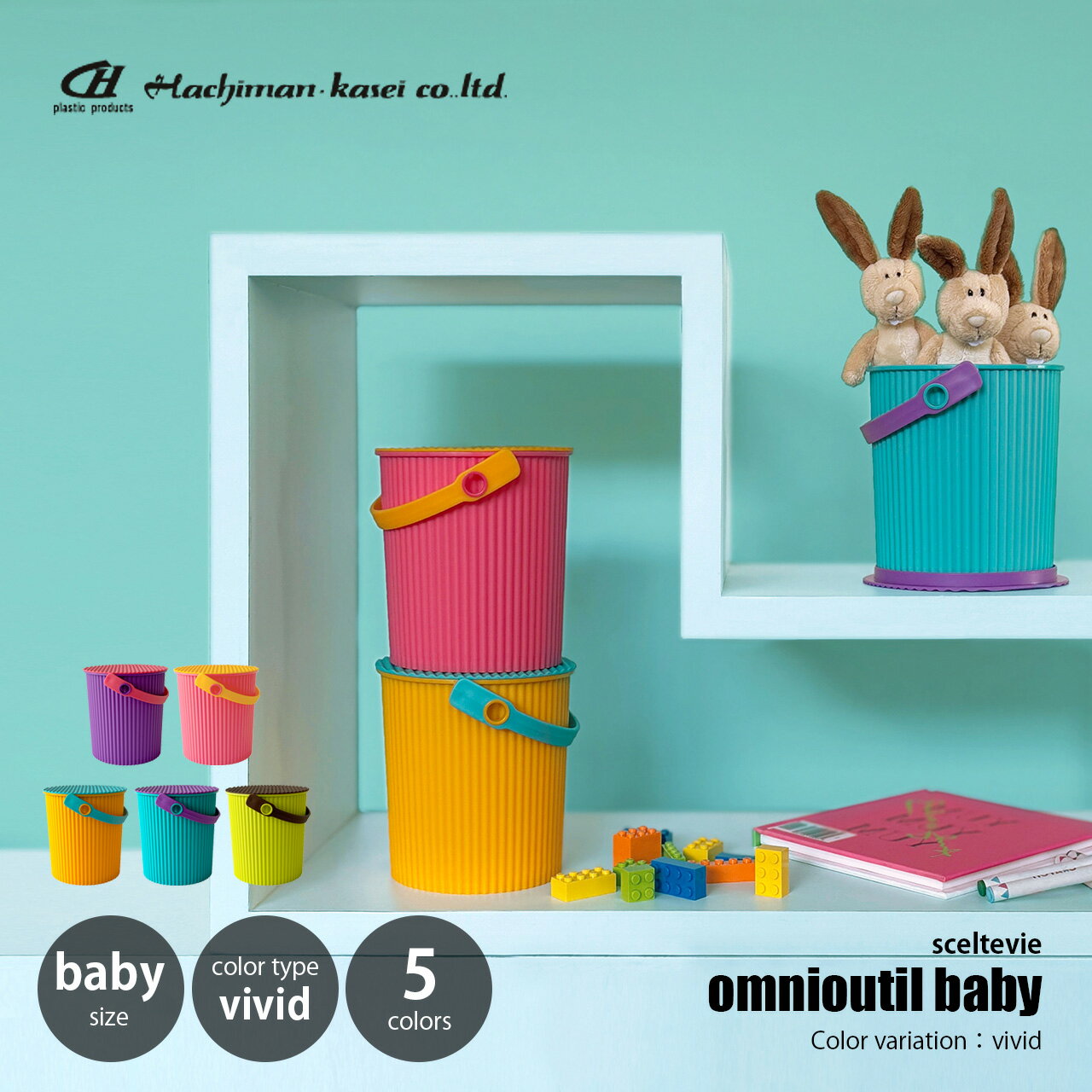 sceltevie セルテヴィエ(八幡化成) omnioutil baby vivid オムニウッティ ベビー ヴィヴィット / マルチバスケット フタ付きバケツ 小物収納 ハンドル付き