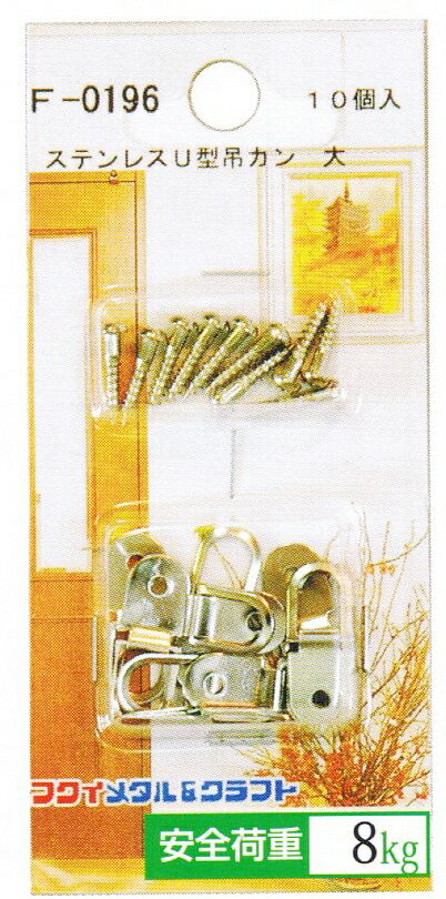 ステンレスU型吊カン 大 10ヶ入 木ネジ10本付X5パック 5パック 1470円 安全荷重:8kg メーカー 福井金属工芸