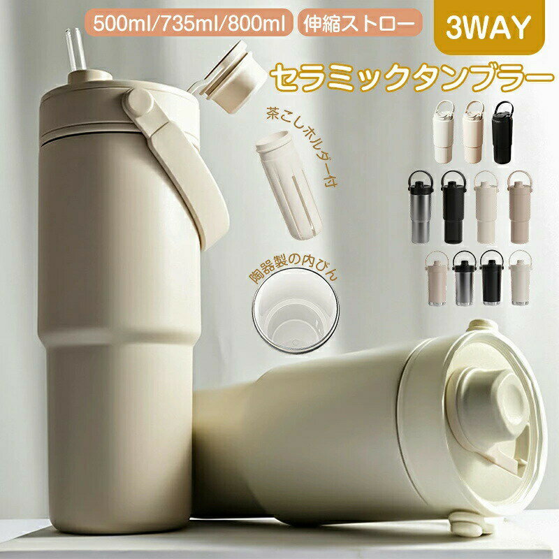 【SS10%OFF】セラミック タンブラー 水筒 牛乳 タンブラー ストロー付き 持ち運び おしゃれ 蓋付き 大容量 こぼれない 735ml 500ml 保温保冷 真空 断熱 水筒 マグボトル コーヒー 豆乳 炭酸 ストロー付き水筒 伸縮ストロー 車載せでき セラミックコーティング