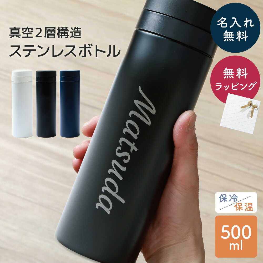 名入れ 水筒 ワンタッチ 500ml 直飲み マグボトル 大人 おしゃれ かわいい 軽い 軽量 サーモステンレスボトル タンブラー 保冷 保温 持ち運び 蓋付き 彫刻名入れ 名前入り 真空2重構造 女子 男子 父の日 母の日 誕生日 プレゼント 卒業 卒部 おすすめ 記念品