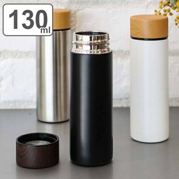 水筒 マグ ミニ 130ml 木目調 サーモステンレスボトル 直飲み ( 保温 保冷 軽量 マグボトル サイズ ミニボトル ステンレスボトル ダイレクトボトル 大人 直のみ すいとう スリム マグ ボトル コンパクト 広口 マイボトル おしゃれ )
