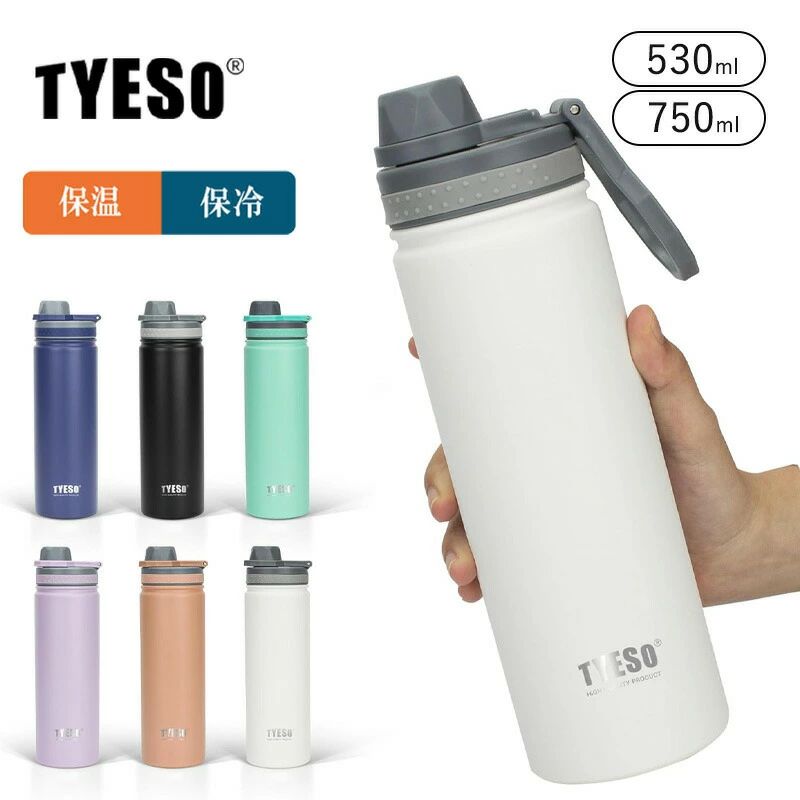 TYESO 水筒 ウォーターボトル 530ml 750ml 保温 保冷 ステンレスボトル 直飲み おしゃれ 真空断熱 真空二重 大容量 こぼれない 漏れ防止 熱湯 マグボトル 通勤 通学 マイボトル スポーツ アウトドア レジャー 水分補給 おしゃれ
