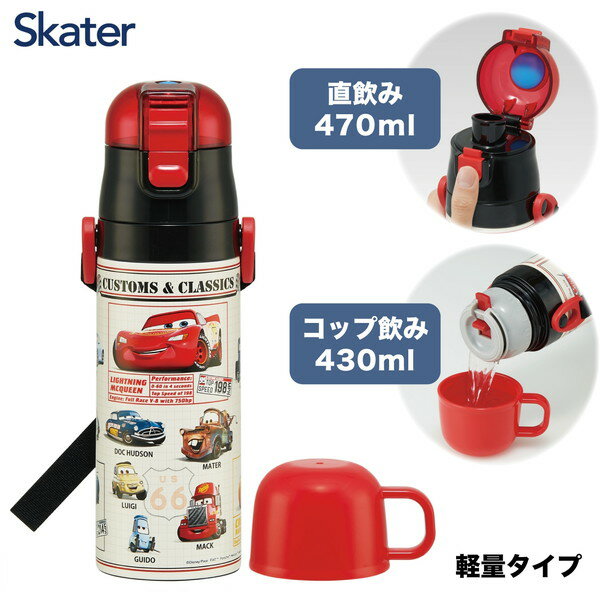SKDC4 カーズ25 スケーター ディズニー 子供用 ステンレス 水筒 2way 直飲み 470ml コップ飲み 430ml 男の子 子供に優しい軽量タイプ 保温 保冷 キッズ