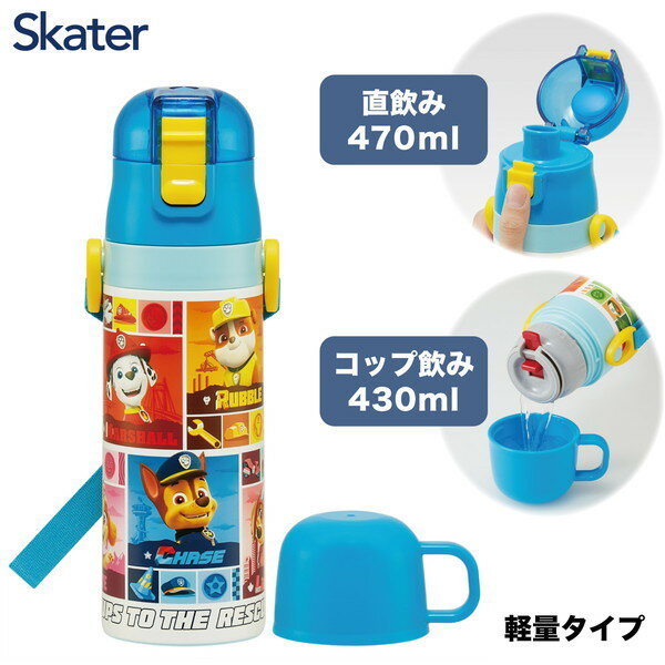 SKDC4 パウ・パトロール25 スケーター 子供用 ステンレス 水筒 2way 直飲み 470ml コップ飲み 430ml 男の子 子供に優しい軽量タイプ 保温 保冷 キッズ