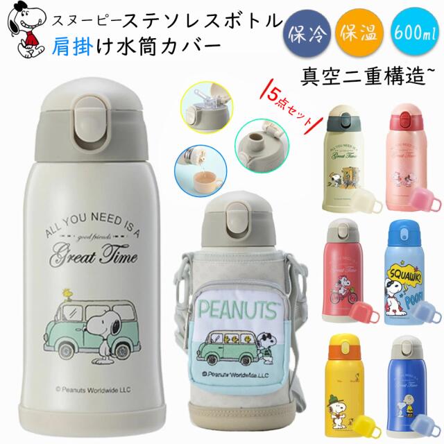 スヌーピー水筒 水筒 ポーチ付き 保温保冷 600ml 子供用 贈答用5点セット 飲み口3種類 ストロー カップ 直飲み snoopy キッズ こども カバー 肩紐 3way コップ 直飲み カップ ステンレスボトル 保温 保冷 通学 ショルダー スポーツ キッズボトル 小学生 保育園 熱中症 ギフト
