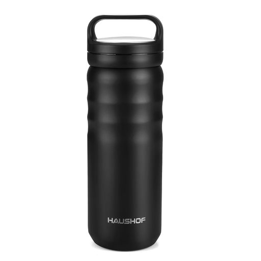 HAUSHOF水筒ステンレスボトル真空断熱ケータイマグ魔法瓶マグボトル530ml真空断熱ボトルスポーツボトル保温保冷ボトルスクリュー式蓋付き白湯OK軽量プレゼント父の日誕生日【ブラック】