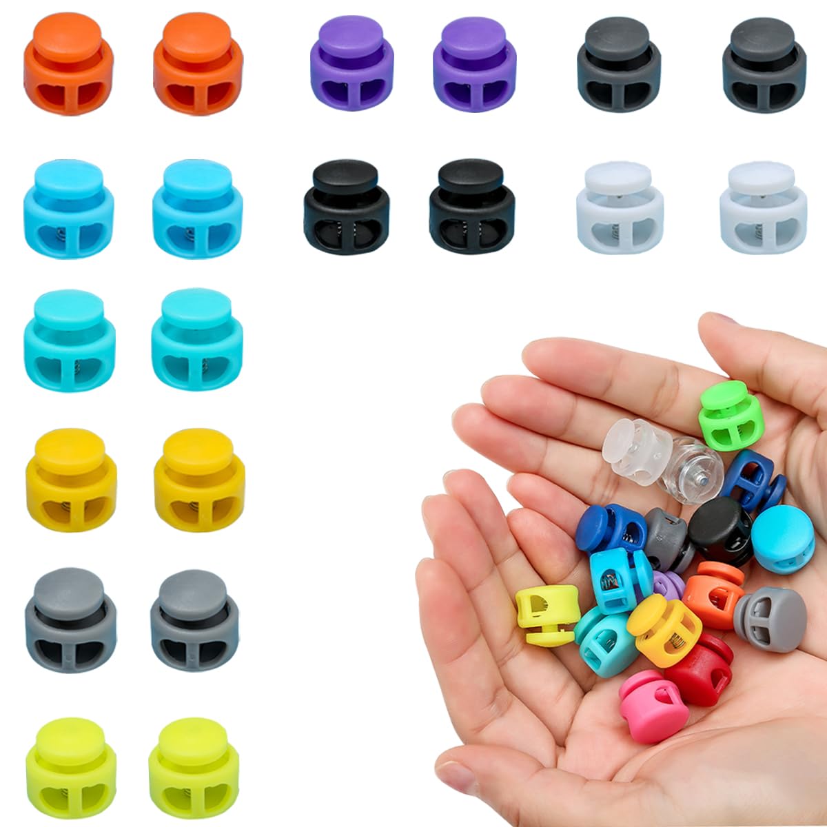 【送料無料】LYHMHAMY コードストッパー 2穴 (20個入り 10色) コードロック スプリング プラスチック シューレースストッパー紐止 靴紐 留め具 帽子用あごひも 手作り 材料 素材 パーツ DIY 手芸 ハンドメイド材料