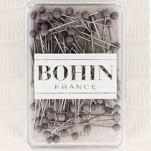 フランス BOHIN ガラス玉待ち針 ガラスヘッドピン パールグレイ 手芸 糸切り 鋏 ムラーノガラスのヘッド