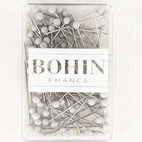 フランスのBOHIN社製 ガラス玉待ち針です。 サイズ:3センチ 80本セット ヘッドの色はパールグレイ ムラーノガラスヘッドは、ピン位置が分かりやすく、便利です。ガラス製のため、アイロンで溶けません。生地を合わせやすく、折り目や裾のマークとして最適です。針部分はニッケルめっき鋼製で、ねじれにくく、酸化しづらいのが特徴です。 ムラーノガラスは、イタリア・ヴェネチアのムラーノ島で作られるガラス製品です。ムラーノ島には職人が腕を競うガラス工房が林立し、別名、ガラスの島とも言われています。その歴史は1000年に及びます。ヴェネチアンガラスとも呼ばれ、イタリアが世界に誇る伝統工芸品です。