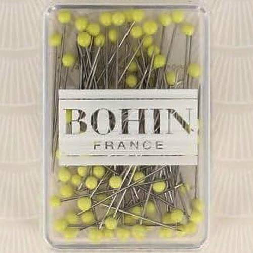 フランス BOHIN ガラス玉待ち針 ガラスヘッドピン プリムストーンイエロー 手芸 糸切り 鋏 ムラーノガラスのヘッド