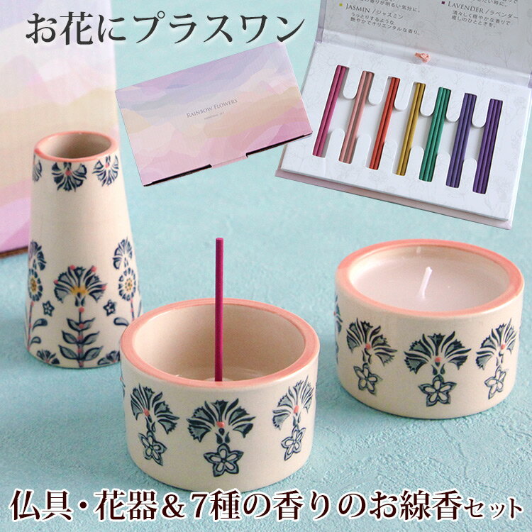 ※メモリアルセットのみの購入はできません※ 【お花にプラスワン】メモリアルセット《仏具・花器3点セット》&レインボーフラワーズ《7種の香りのお線香セット》*送料はお花に準ず。当店から後ほどメールでお知らせ 陶器製 キャンドル ※お花と一緒にご注文くださいませ※