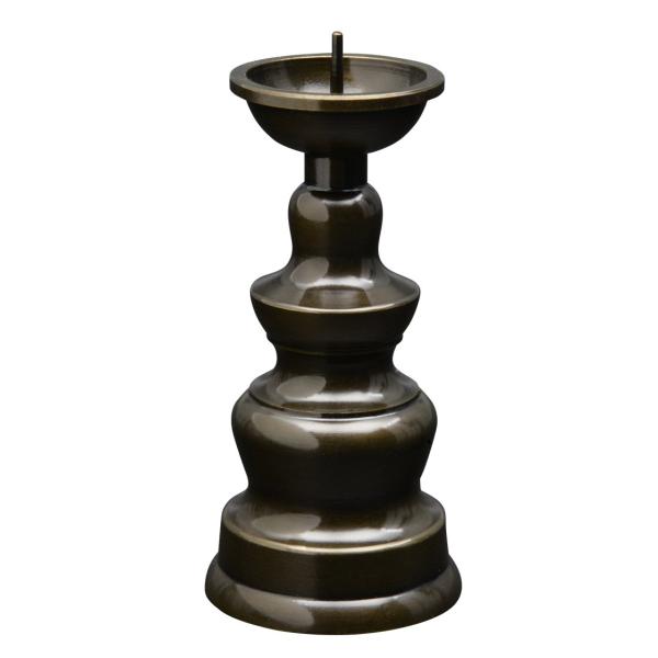 仏具 ローソク立てとは ローソク立とは、ローソクを立てる仏具のことです。 ローソク立は、ローソク立てや燭台(しょくだい)とも呼ばれます。 お仏壇にローソク立は、正式に飾る11具足では一対用いる事もありますが、コンパクトなお仏壇には1個でも大丈夫です。 ローソク立て 黒光色 安心の国産仏具 ローソク立て 黒光色は、真鍮でできています。手に取るとズッシリ重たいのは、高級仏具の証。高岡の職人が一つひとつ丁寧に作ったローソク立ては、 お仏壇をより高級に演出してくれます。 簡単お手入れ ローソク立て 黒光色は真鍮で出来てています。 お手入れはとっても簡単!汚れた時に、堅く絞ったフキンで拭いてください。 研磨剤は使わず拭くだけで、美しい黒光色を保つことができます。 ローソク立て 火立て 仏具 高岡 ダルマ 黒光色