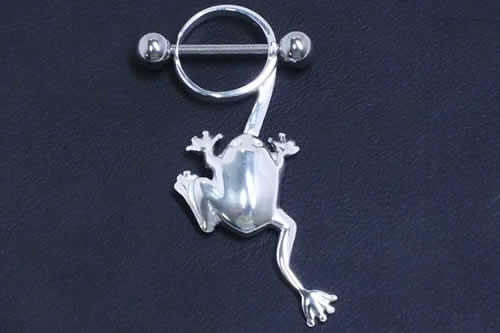ジャンプしたカエルが舌で獲物を取る様子をニップルシールドにしたユニークなボディピアス。かえるをモチーフにしたピアスは人気が高いですが、ニップルピアスは珍しい。乳首のピアスをオシャレに、個性的にコーディネートしてくれるニップルピアスです。下着感覚で楽しめるニップルピアスは大人のボディピアスです。男女を問わず装着できるので、ペアで愛用してもOK。縁起もいいので、プレゼントとしてもお奨めのジュエリーです。 スペックバーベル:14ゲージ(1.6mm)ボールサイズ(直径):5mmシールド内径:11mm素材バーベル:サージカルステンレス316L備考表示は1ヶの価格です。写真はイメージです。実際の商品とは多少異なる場合がございます。ハンドメイドの為多少サイズは異なります。