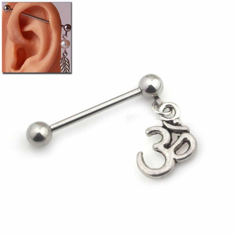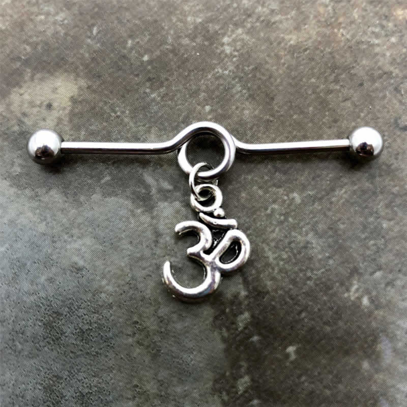 [14G ロングバーベル 長いストレートバーベル ボディピアス] 梵字チャーム インダストリアル ボディーピアス 14ゲージ 14g メンズ レディース サージカルステンレス316L メガバーベル 繋ぐ つなぐ 軟骨 ヘリックス ボンジ ボヘミアン インディアンジュエリー 漢字 おもしろ