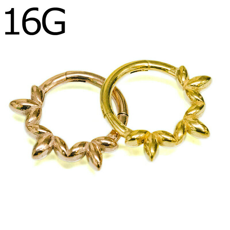 ボディピアス 16G オリーブリーフワンタッチセグメントリング / ステンレス シンプル ボディーピアス 16ゲージ フープ イヤーロブ リングピアス 軟骨ピアス サージカルステンレス ゴールド ローズゴールド クリッカー つけっぱなし セプタム