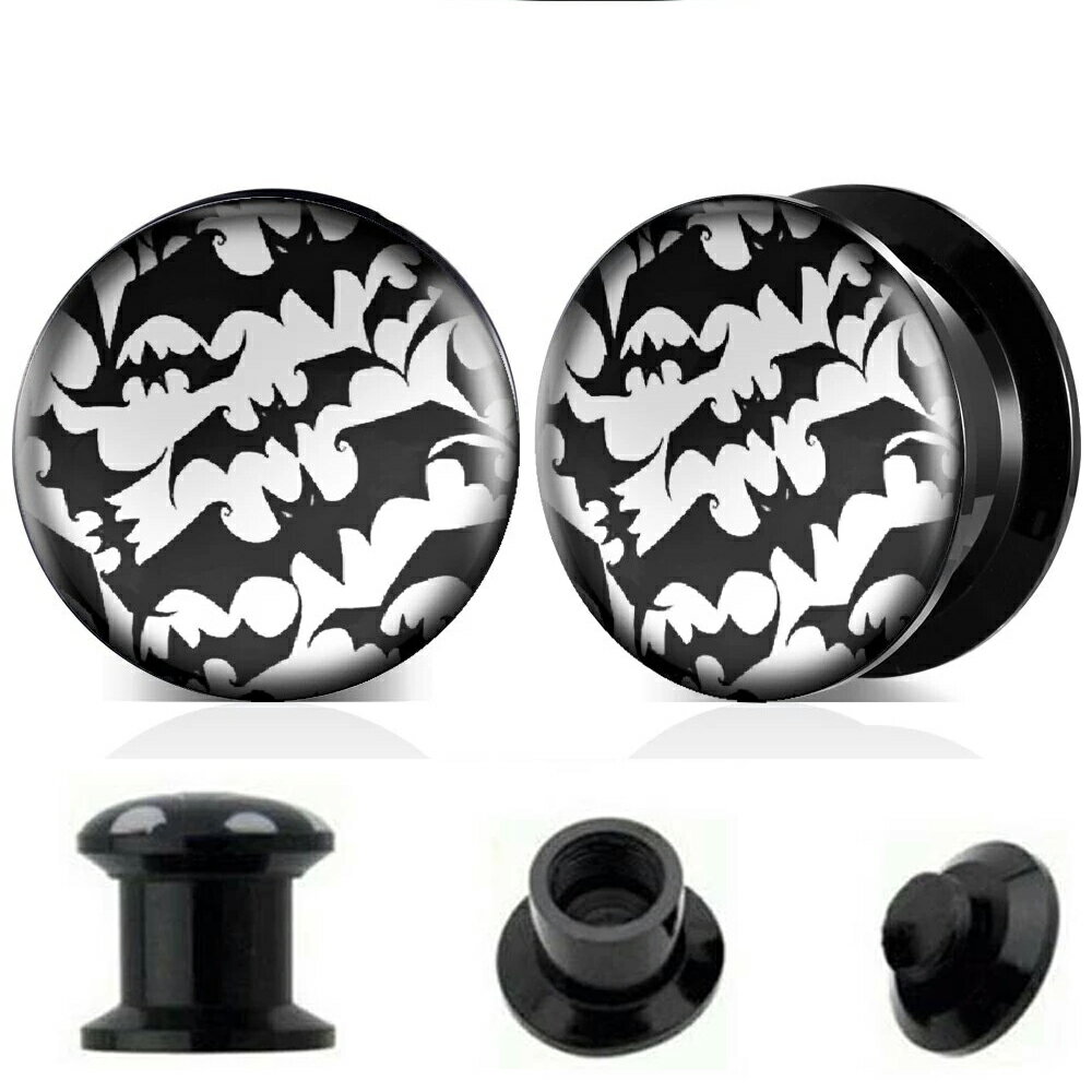 アクリルタッパーフレア(バンパイアバット)6ゲージ 6G 4ゲージ 4G 2ゲージ 2G 0ゲージ 0G 00ゲージ 00G 12.0mm 12mm ボディピアス メンズ レディース耳 プレゼント プラグ ボディーピアス ネジ式 黒色 吸血鬼 こうもり 蝙蝠 コウモリ ドラキュラ伯爵 バンパイヤ 男性 女子