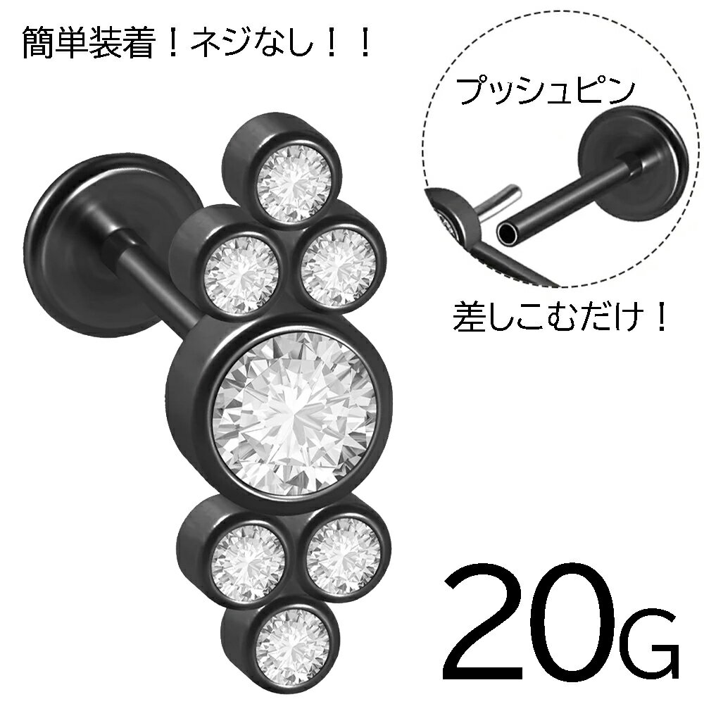 [ 20G 差しこむタイプ ] ハウンドトゥース ブラック プッシュピンラブレット スタッド 1個販売 ボディピアス 20ゲージ 0.8mm 20ga サージカルステンレス316L製 黒色 キュービックジルコニア ジュエル ストーン 石付き インターナル ネジ無し 螺子無し