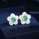 ・カテゴリ: ピアス・イヤリング・素材: シルバー・純度: 925シルバー・加工: 翡翠埋め込み・スタイル: レトロ・スタイル分類: 文芸レトロ・モチーフ: 三つ葉・モチーフ分類: 植物・花・対象: 女性