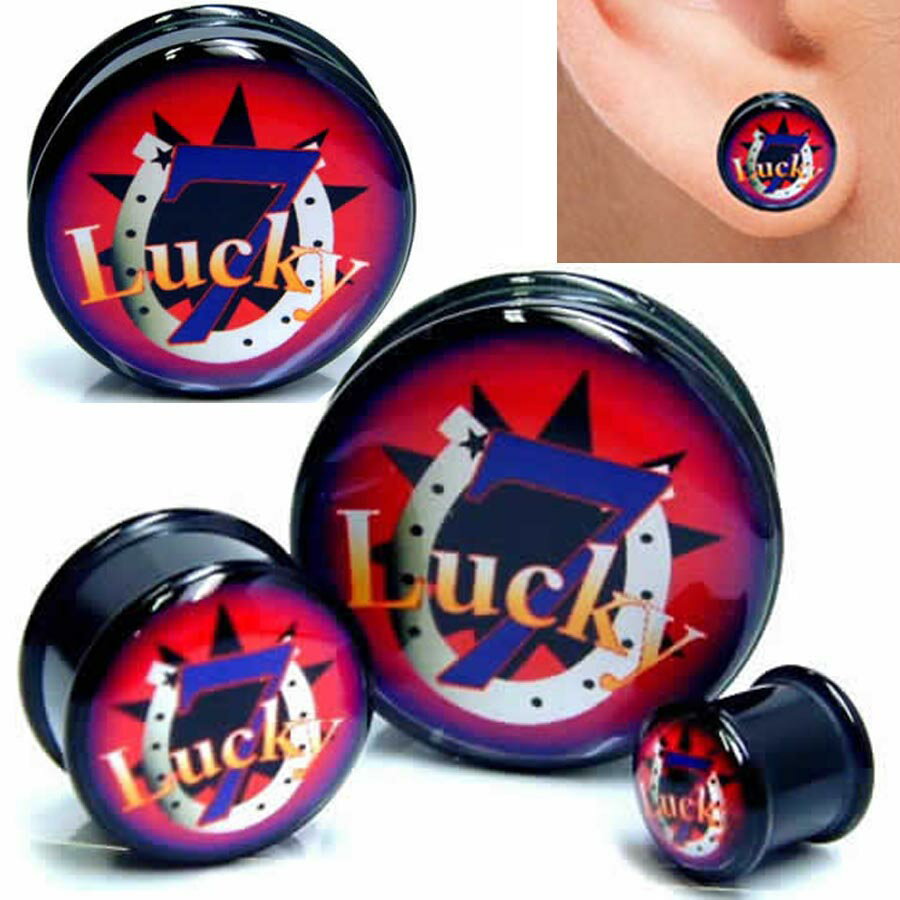 [アクリル プラグ ボディピアス ] グラフィックグッドラックプラグ 1個販売 ボディピアス 金属アレルギー対応 メンズ レディース ダブルフレア プラスティック プラスチック 樹脂 黒色 ブラック 777 ラッキー7 ラッキーセブン 幸運 馬蹄 ホースシュー 大きい ビッグ ラージ