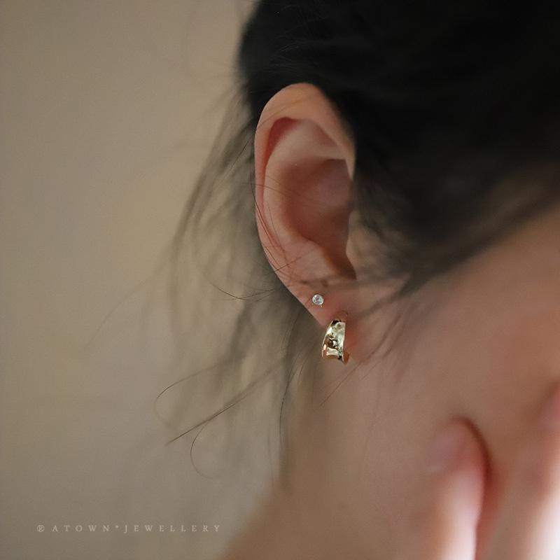 イヤリング レディース 925シルバー 電気メッキ加工 14Kゴールド 幅広 イヤーカフ風 リング型 光沢 幾何学模様 ゴールドカラー シルバーカラー 日韓風 小さめサイズ ファッション 通勤
