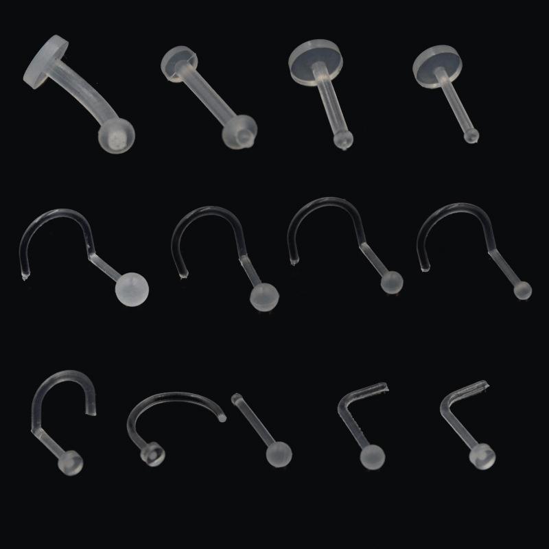 ボディピアス 男女兼用 金属アレルギー対応 アクリル PTFE バイオプラスチック 軟骨 透明 シークレット 目立たない ストレートバー カーブバー C型 耳 鼻 眉 唇(x2)
