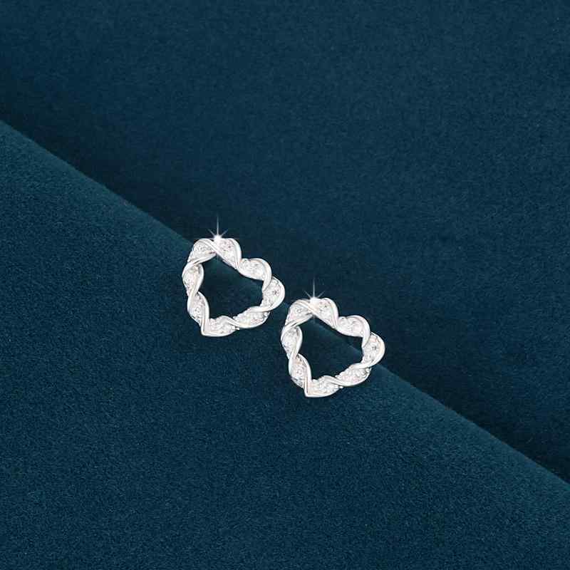 ピアス レディース S925スターリングシルバー 絡まるハートモチーフ ジルコニア 上品 エレガント シンプル 透かし 大人かわいい デイリーユース オフィス カジュアル スタッドピアス 銀色