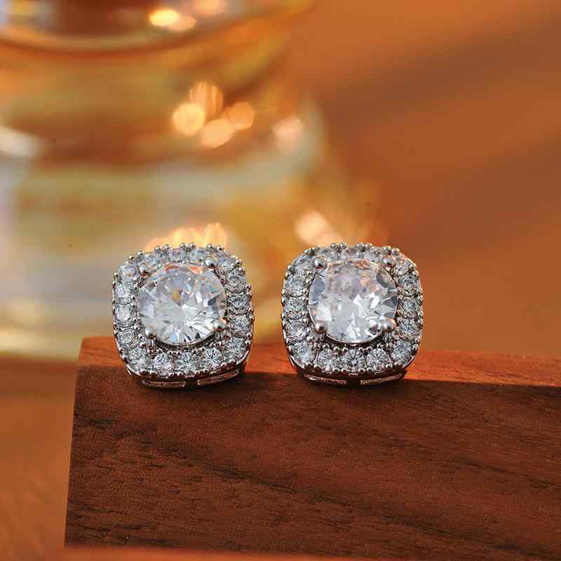 ピアス レディース S925 シルバーポスト スクエア 幾何学 輝き ジルコニア クリスタル ライトラグジュアリー 高級感 エレガント 上品 個性的 銅合金 電気メッキ加工 シルバー 春夏 欧米風 ファッション 通勤