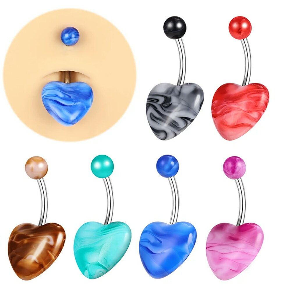 [14G ボディピアス 臍ピアス] ハートガール へそピアス 1個販売 14ゲージ レッド ブルー グリーン ブラウン レッド ブラック マーブル模様 ヘソピアス サージカルステンレス316L ネイブル ボディーピアス メンズ レディース バナナバーベル カーブバーベル 外ネジ アクリル