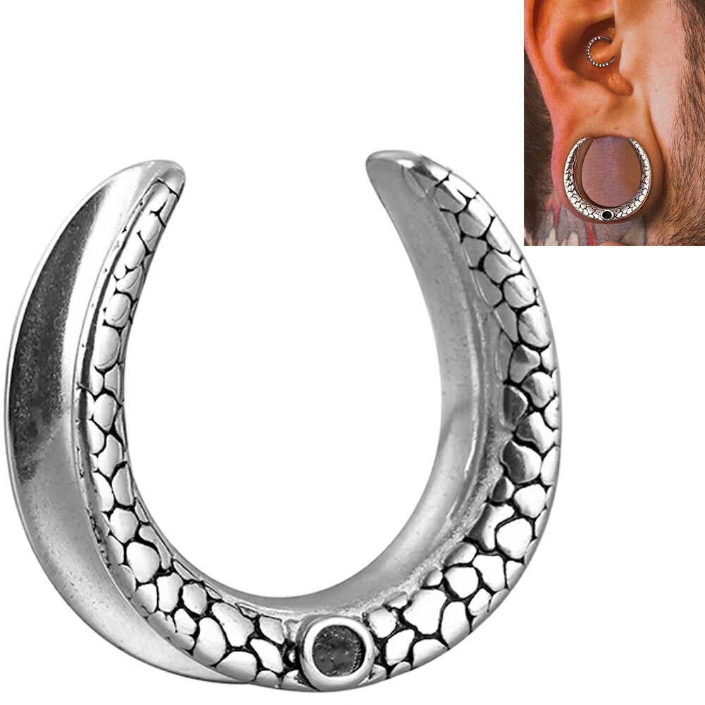 [0G 00G 12mm ステンレス ボディピアス] スネークスキンハーフフレア ボディーピアス 1個販売 半月方 三日月型 メンズ レディース 男子 女の子 個性的 ホールピアス 0ゲージ 00ゲージ 12ミリ 銀色 へび ヘビ 蛇 スネイク 巳年 年末年始 サージカルステンレス316L