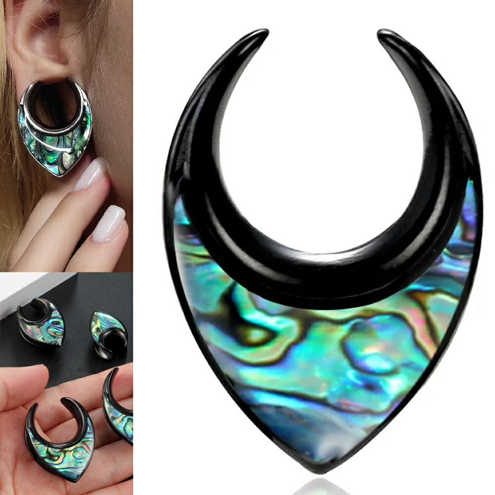 母貝をセットした黒色ブラックのステンレス製の涙型(ティアードロップ)のレリーフに馬蹄型のハーフフレア型のボディピアス。三日月型とも半月型ともいわれるおしゃれなダブルフレア型ボディーピアス。ボヘミアンなデザインのステンレス製ボディピアス。ユニークで面白いデザインのボディピアスは存在感もあり彼氏彼女にもオススメ。ある程度ホールの拡張に余裕のある人向けのボディピアス。素材も全身ステンレスなので、つけっぱなしでも劣化しにくくきれいで安心。装着する向きにもこだわりたいボディピアス。メンズでもレディースでも使えるおしゃれなボディーピアスはペアルックやプレゼントにも。男の人からも女の人からも人気のボディピアスになること間違いなし。ギフトにも使えます。ゲージサイズは0ゲージ(0G)、00ゲージ(00G)、12mm(12ミリ・ハーフインチ)から選べます。[スペック]0ゲージ(8mm)/ 00ゲージ(10mm)/ 12mm長さ(有効軸長):約7mm※ゲージサイズは真ん中の細い部分。[素材]ステンレススティール表示は1ヶの価格です。写真はイメージです。実際の商品とは多少異なる場合がございます。ハンドメイドの為多少サイズは異なります。