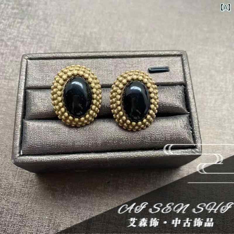 ピアス レディース ヴィンテージ風 エレガント 通勤 イヤリング 中古 猫目石風 小ぶり 小さめ 楕円形・素材: 合金・処理方法: 電気メッキ・形状: 幾何学型・カラー: ブラック, 黄石, グレー, 青金石・流行要素: 楕円・スタイル: ファッションOL・対象: 女性・流行要素分類: 幾何学
