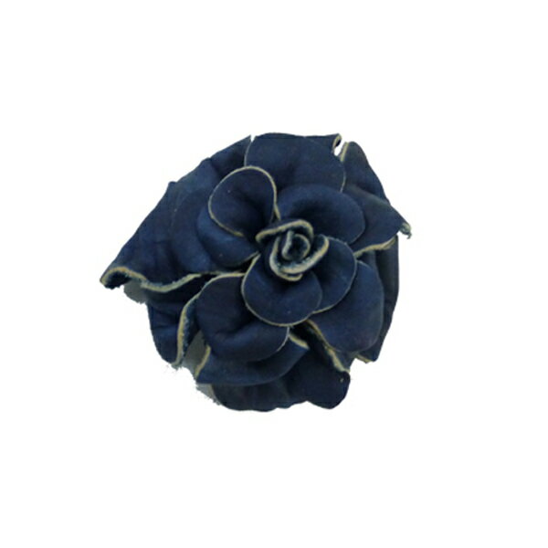 福山レザー 藍染花ブローチ ブロッシュ コサージュとしても使えるブローチピンとクリップの2wayタイプ ハンドメイド革製品 青色 レディース 女性用
