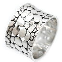 シルバー925 平打ちリング 石畳風 メンズ z5 [縦幅14mm][18号21号]シンプル (フラット プレーン 指輪 シルバーアクセサリー シルバーリング 削り出し)
