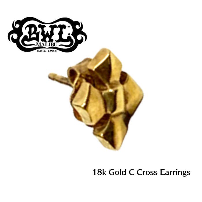 【Bill Wall Leather/ビルウォールレザー】ピアス/18k Gold C Cross Earring / E215G ★REAL DEAL