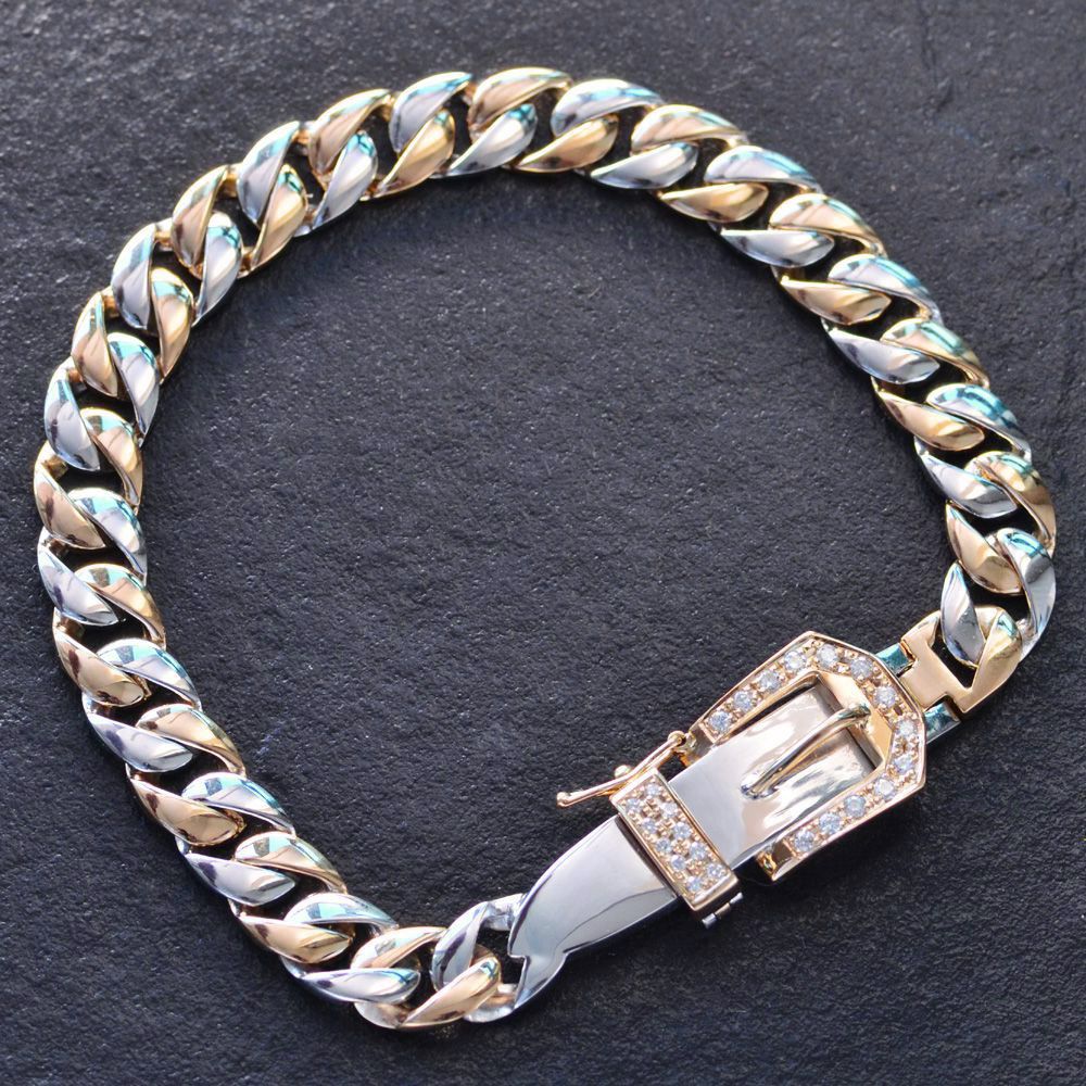 喜平 ブレスレット K18PG 18金 ピンクゴールド プラチナ Pt900 コンビ メンズ ダイヤモンド バックル金具 喜平ブレスレット 20cm 日本製 刻印入り 鑑別書付き 男性用 シンプル プレゼント ギフト 【動画あり】【standard】