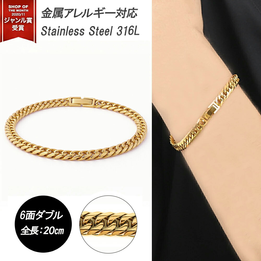 喜平 ブレスレット K18 カラー ステンレス 6面 6面ダブル 20cm キヘイブレスレット サージカルステンレス 316L 18金 ダブル キヘイ メンズ ジュエリー アクセサリー レディース 男女兼用 金属アレルギー メンズブレスレット プレゼント 男性 女性 誕生日 ギフト
