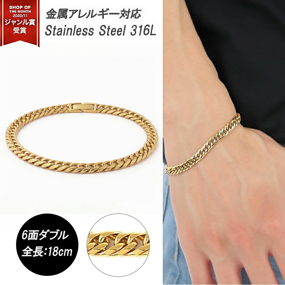 喜平 ブレスレット k18 カラー ステンレス 6面 6面ダブル 18cm キヘイブレスレット サージカルステンレス 316L 18金 ダブル キヘイ メンズ ジュエリー アクセサリー レディース 男女兼用 金属アレルギー メンズブレスレット プレゼント 男性 女性 誕生日 ギフト