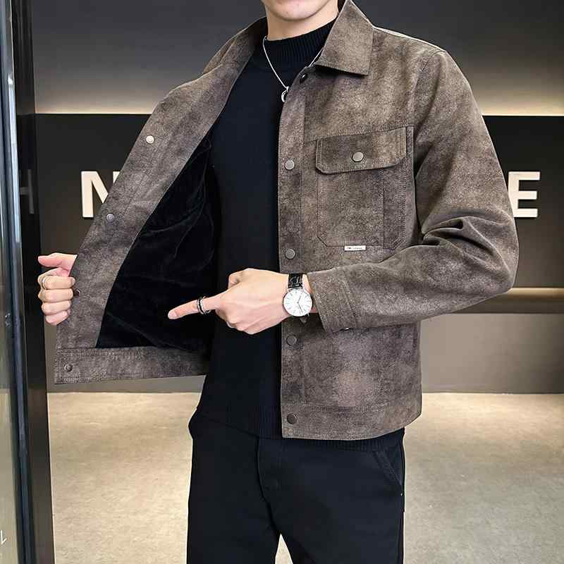 2個セットジャケット メンズ 男性用 裏起毛 フェイクレザー ブルゾン 秋冬 防風 耐摩耗 無地 黒 ブラック グレー ブラウン カーキ 羽織り アウター ジャンパー 長袖・素材機能: 耐摩耗性.防風・カテゴリ: ジャケット・スタイル: 韓国版・襟の形: 襟付き・フィット: スリム・前立て: シングルブレスト・フード: なし・厚さ: 厚手・柄: 無地・誤差範囲: 1~3cm・対象: ・主な生地の組成: 含氯纤维(氯纶)・裏地: 加绒・適用場面: 日常・ディテール: の裏地・裾のデザイン: ストレート・加工: 防しわ加工・着丈: レギュラー・ポケットスタイル: 立体パッチポケット・着用方法: アウター・袖丈: 長袖・カラー: 黒グレー.茶色・サイズ: M.L.XL.2XL.3XL.4XL・袖のタイプ: レギュラー袖・対象年齢: 成人・対象性別: 男性