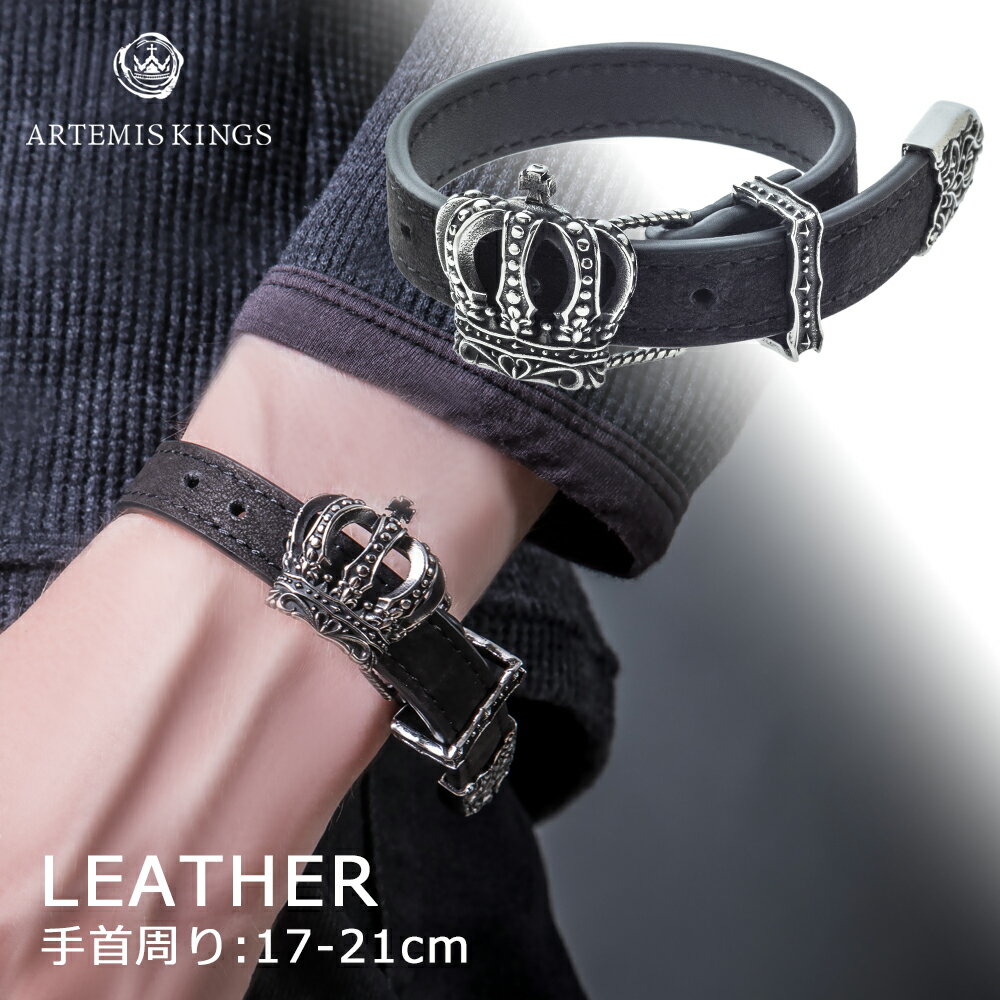 アルテミスキングス ARTEMISKINGS クラウンレザーブレスレット AKB0030 【skz】ブランド メンズ ブレスレット レザー ステンレス 本革 革 ベルト バックル 王冠 クラウン ブラック 黒 男性 彼氏 大人 かっこいい 誕生日 プレゼント ギフト 記念日 クリスマス