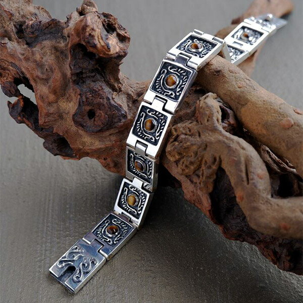 Give Me a Wing ベルト ブレスレット シルバー メンズ 天然石 タイガーアイ ブレス 腕輪 シルバー925 シルバーブレスレット イエロー 黄 虎目 石 唐草 模様 男性 彼氏 夫 誕生日 記念日 ブランド ギフト プレゼント 人気 ストリート