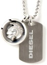 DIESEL ペンダントネックレスディーゼル シルバードッグタグ3Dブレイブマンコインロゴプレートメンズ レディース ユニセックスおしゃれアクセサリーシルバーコインモヒカン ビンテージミリタリーテイストPENDANT Unisex Stainless Steel Necklace