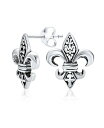 ブリング メンズ ピアス・イヤリング アクセサリー Unisex Fleur De Lis Stud Earrings in Oxidized Sterling Silver for Men Silver black