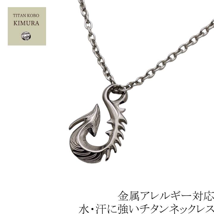 チタン ネックレス ペンダント トップ HK2 釣り針 フィッシュフック 男性 メンズ チタンチェーン付属 オールチタン ニッケルフリー