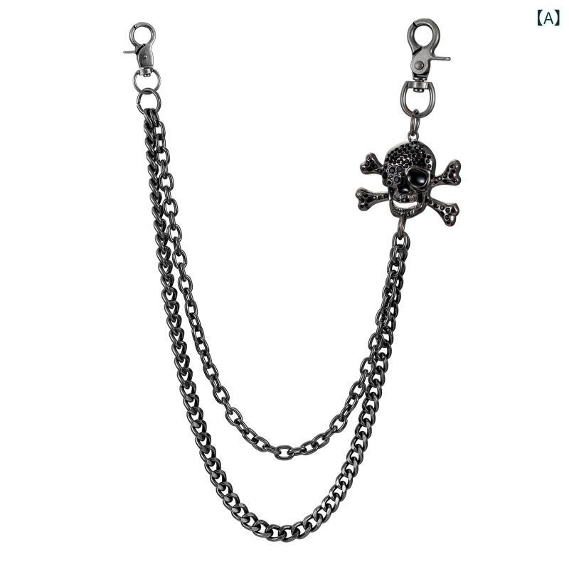 ウォレットチェーン パンツチェーン ユニセックス 男女兼用 ダブル スカル 骨 骸骨 パンク ウエスタン カウボーイ ヒップホップ レトロ ヴィンテージ メタル ロング ラインストーン ジルコニア ファッション 小物